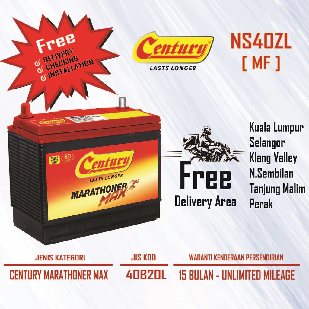 Promosi Bateri Kereta Century Marathoner Ns40zl Rm180 Siap Trade In Shopee Malaysia